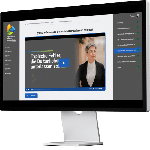 Mit klar strukturierten Videos zeige ich Dir in ca. 35 Minuten, wie Du Dich auf Interviews vorbereitest und eine professionelle Haltung bewahrst.